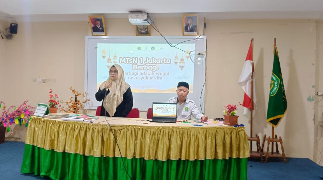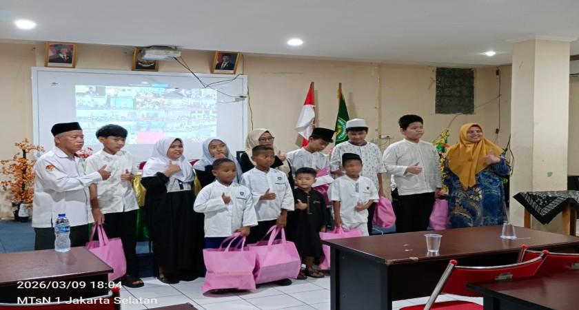 Jakarta-9 Maret 2026, MTsN 1 Jakarta mengadakan kegiatan buka bersama secara serentak melalui daring bersama Menteri Agama RI di Kanwil Kemenag Provinsi DKI Jakarta sekaligus pembinaan pegawai dilingkungan Kementerian Agama serta lounching Gerakan Jakarta Berwakaf kegiatan ini dirangkaikan dengan pemberian santunan kepada anak yatim dan dhuafa, memanfaatkan momentum di bulan suci Ramadhan serta menumbuhkan rasa kepedulian dan kebersamaan di lingkungan MTsN 1 Jakarta.