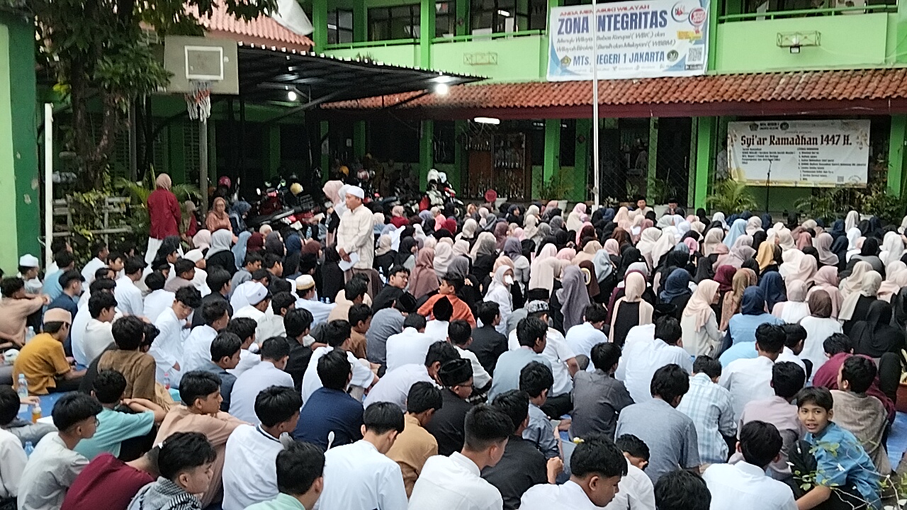 Jakarta—12 Maret 2026. Madrasah Tsanawiyah Negeri 1 Jakarta mengadakan kegiatan buka bersama yang dilaksanakan di lapangan Madrasah Tsanawiyah Negeri 1 Jakarta dan diikuti oleh seluruh siswa/i kelas 7, 8, dan 9.